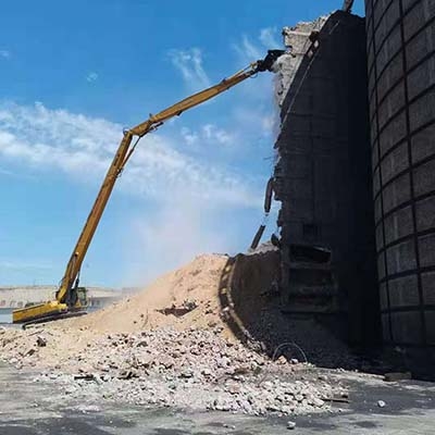 適用范圍:拆樓機(jī)加長(zhǎng)臂分為大臂,中臂,小臂三節(jié),配備液壓剪、破碎錘使用,常規(guī)用于高層建筑的拆解、解體工程。